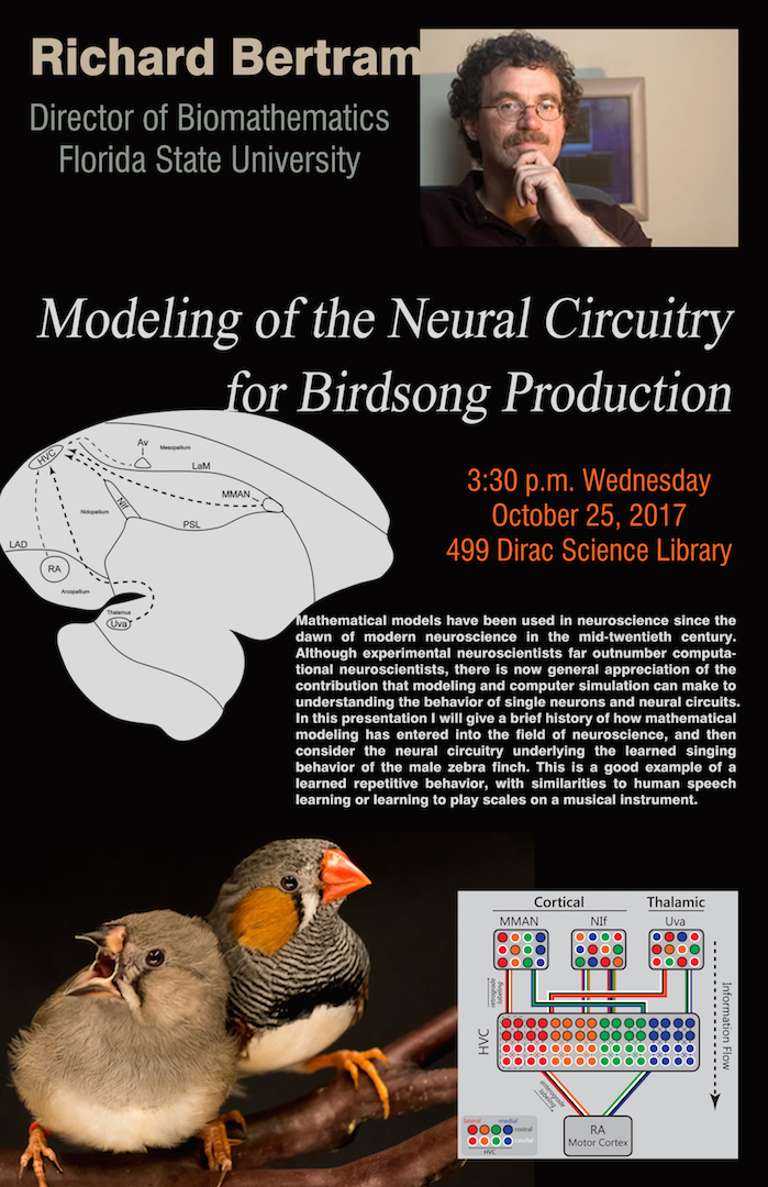 Mathematical models have been used in neuroscience since the dawn of modern neuroscience in the mid-twentieth century. Although experimental neuroscientists far outnumber computational neuroscientists, there is now general appreciation of the contribution that modeling and computer simulation can make to understanding the behavior of single neurons and neural circuits. In this presentation I will give a brief history of how mathematical modeling has entered into the field of neuroscience, and then consider the neural circuitry underlying the learned singing behavior of the male zebra finch. This is a good example of a learned repetitive behavior, with similarities to human speech learning or learning to play scales on a musical instrument.