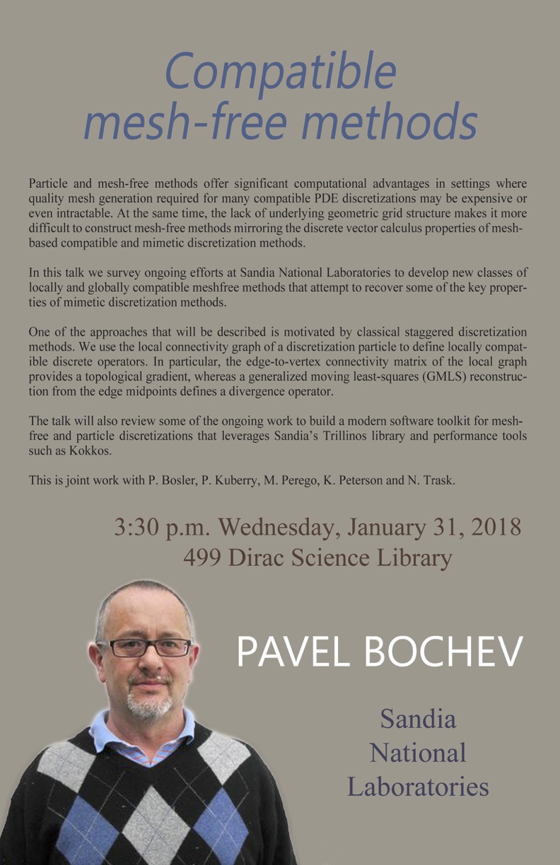 The talk will also review some of the ongoing work to build a modern software toolkit for mesh-free and particle discretizations that leverages Sandia’s Trillinos library and performance tools such as Kokkos.
