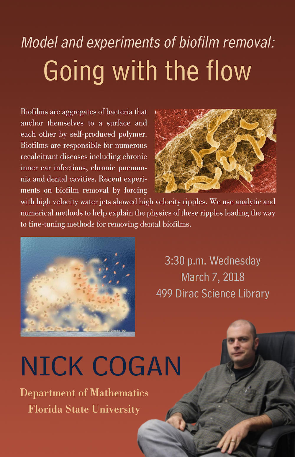 Department of Mathematics, Florida State University "Model and experiments of biofilm removal: Going with the flow"