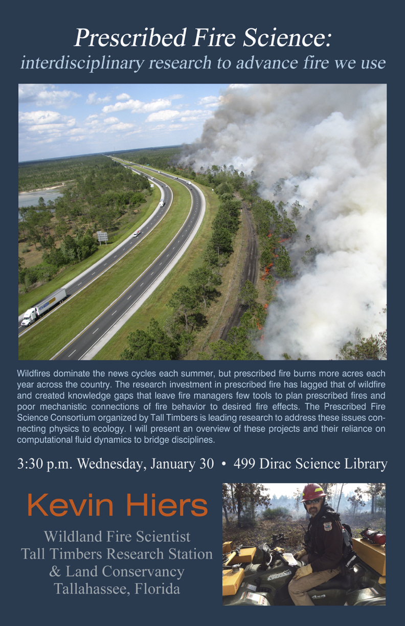 Wildfires dominate the news cycles each summer, but prescribed fire burns more acres each year across the country. The research investment in prescribed fire has lagged that of wildfire and created knowledge gaps that leave fire managers few tools to plan prescribed fires and poor mechanistic connections of fire behavior to desired fire effects. The Prescribed Fire Science Consortium organized by Tall Timbers is leading research to address these issues connecting physics to ecology. I will present an overview of these projects and their reliance on computational fluid dynamics to bridge disciplines.