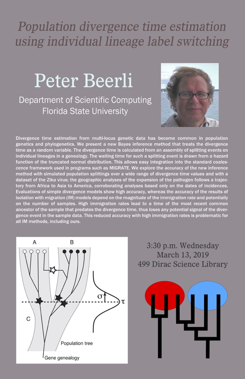 Divergence time estimation from multi-locus genetic data has become common in population genetics and phylogenetics. We present a new Bayes inference method that treats the divergence time as a random variable. The divergence time is calculated from an assembly of splitting events on individual lineages in a genealogy. The waiting time for such a splitting event is drawn from a hazard function of the truncated normal distribution. This allows easy integration into the standard coalescence framework used in programs such as MIGRATE. We explore the accuracy of the new inference method with simulated population splittings over a wide range of divergence time values and with a dataset of the Zika virus; the geographic analyses of the expansion of the pathogen follows a trajectory from Africa to Asia to America, corroborating analyses based only on the dates of incidences. Evaluations of simple divergence models show high accuracy, whereas the accuracy of the results of isolation with migration (IM) models depend on the magnitude of the immigration rate and potentially on the number of samples. High immigration rates lead to a time of the most recent common ancestor of the sample that predates the divergence time, thus loses any potential signal of the divergence event in the sample data. This reduced accuracy with high immigration rates is problematic for all IM methods, including ours.