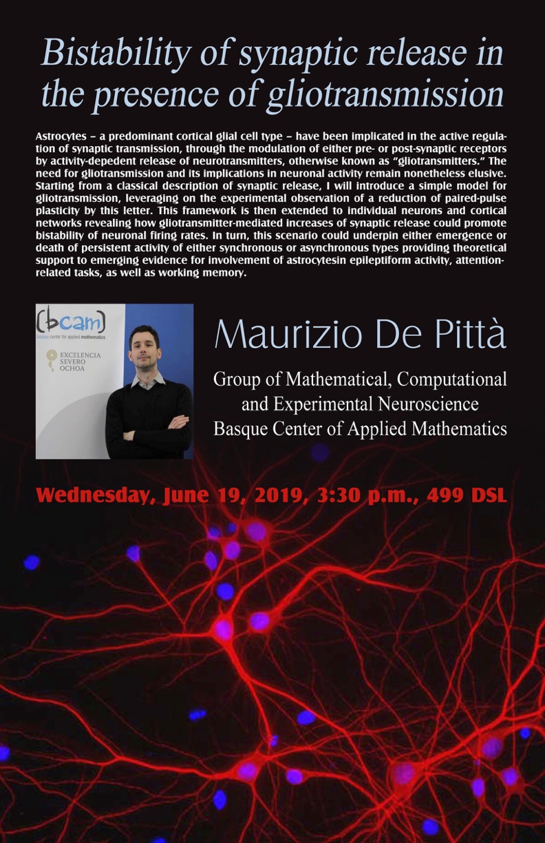 Astrocytes – a predominant cortical glial cell type – have been implicated in the active regulation ofsynaptic transmission, through the modulation of either pre- or post-synaptic receptors by activity-depedent release of neurotransmitters, otherwise known as “gliotransmitters.” The need forgliotransmission and its implications in neuronal activity remain nonetheless elusive. Starting from aclassical description of synaptic release, I will introduce a simple model for gliotransmission, leveraging on the experimental observation of a reduction of paired-pulse plasticity by this letter. Thisframework is then extend to individual neurons and cortical networks revealing how gliotransmitter-mediated increases of synaptic release could promote bistability of neuronal firing rates. In turn, thisscenario could underpin either emergence or death of persistent activity of either synchronous orasynchronous types providing theoretical support to emerging evidence for involvement of astrocytesin epileptiform activity, attention-related tasks, as well as working memory