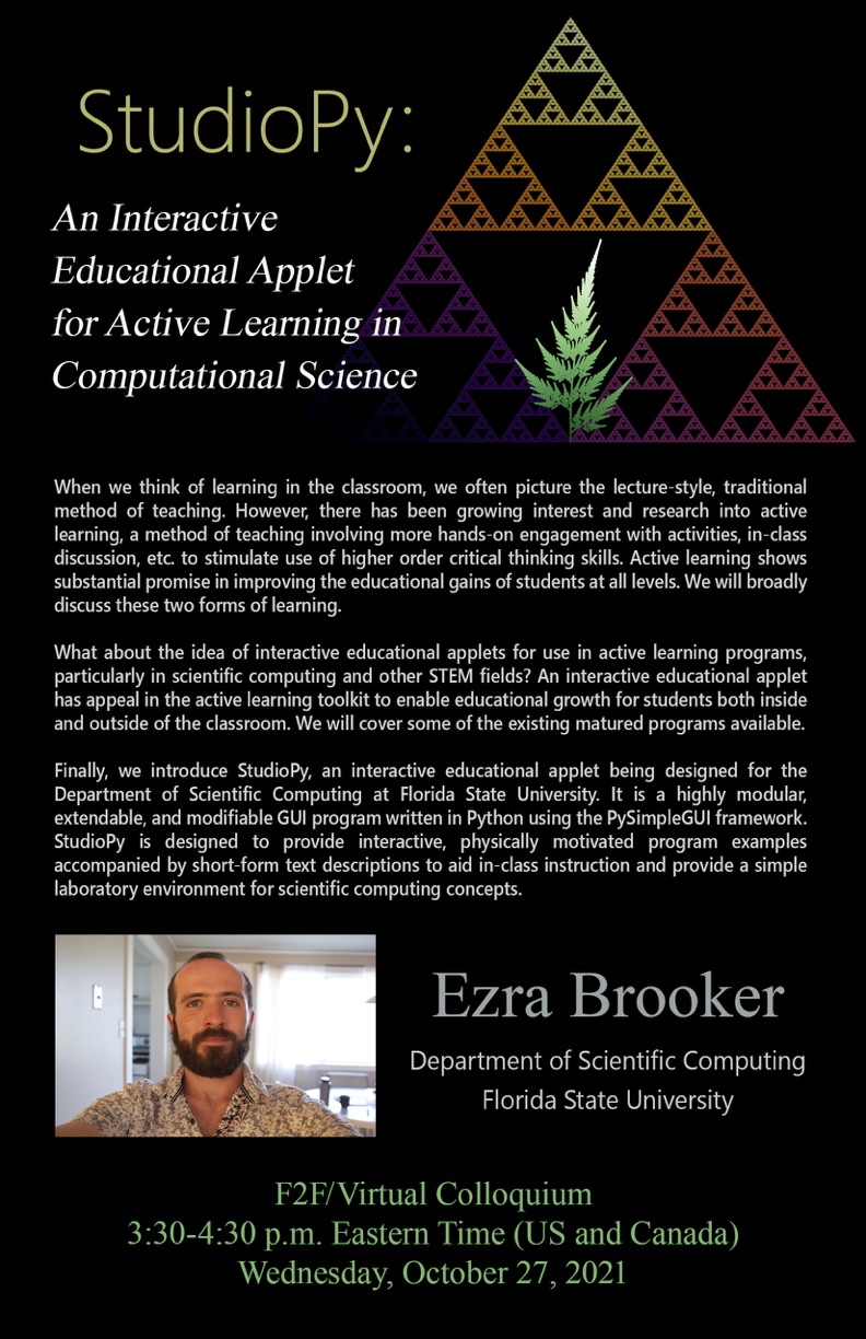 What about the idea of interactive educational applets for use in active learning programs, particularly in scientific computing and other STEM fields? An interactive educational applet has appeal in the active learning toolkit to enable educational growth for students both inside and outside of the classroom. We will cover some of the existing matured programs available.