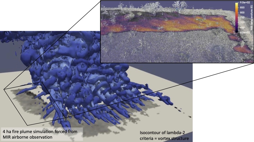 Coupled fire-atmosphere systems are currently developed to respond to the need for operational systems in air quality and fire attack management. This presentation shows how Infra-Red airborne observation can be used to support this goal.