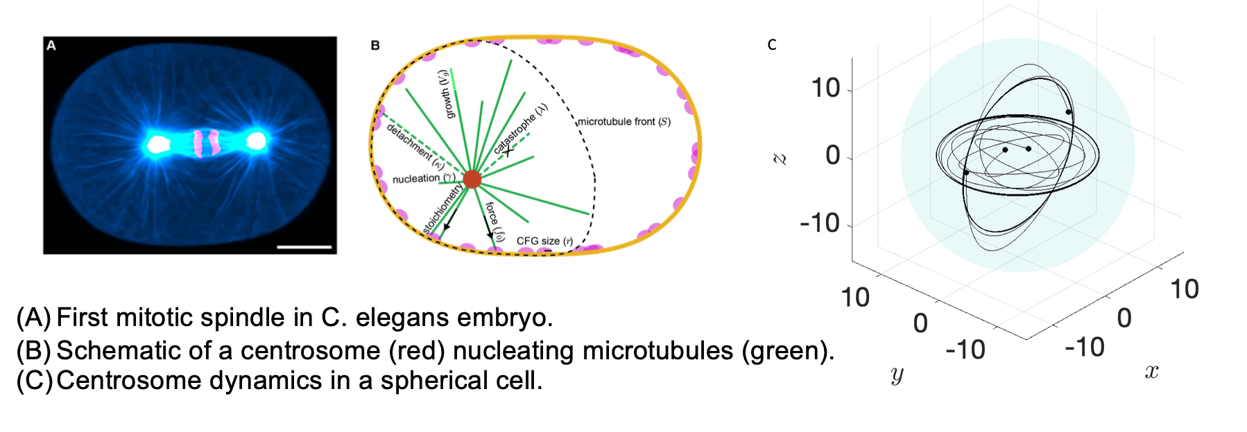 The Stoichiometric Model for the interaction of centrosomes with cortically anchored pulling motors, through their associated microtubules (MTs), has been applied to study key steps in the cell division such as spindle positioning and elongation. In this work we extend the original Stoichiometric Model to incorporate (1) overlap in the cortical motors, and (2) the dependence of velocity in the detachment rate of MTs from the cortical motors. We examine the effects of motor overlap and velocity-dependent detachment rate on the centrosome dynamics, such as the radial oscillation around the geometric center of the cell, the nonlinear nature (supercritical and subcritical Hopf bifurcation) of such oscillation, and the nonlinear orbital motions previously found for a centrosome. We explore biologically feasible parameter regimes where these effects may lead to significantly different centrosome/nucleus dynamics. Furthermore we use this extended Stoichiometric Model to study the migration of a nucleus being positioned by a centrosome. This is joint work with Reza Farhadifar and Michael Shelley.