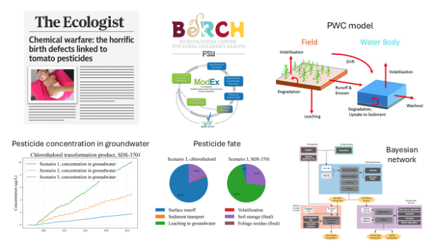 Agriculture is a cornerstone of Florida’s economy, particularly in South Florida. However, intensive farming practices are closely tied to heavy pesticide use, raising concerns about water quality. Chlorothalonil, a broad-spectrum fungicide widely applied in the region, has an uncertain environmental fate and transport behavior. In particular, the key processes and parameters governing its movement and transformation in natural systems remain poorly understood.
